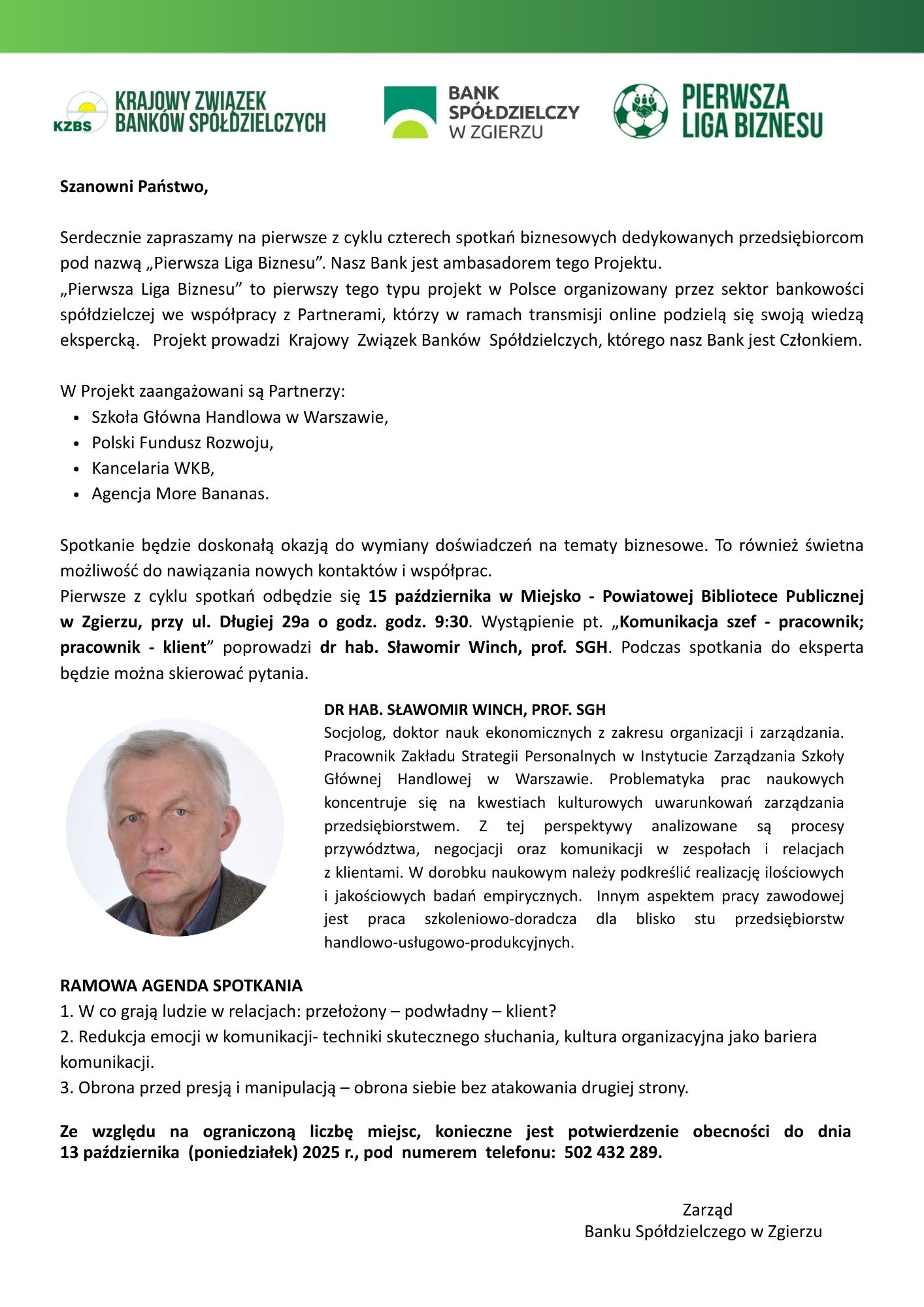 Zaproszenie na Pierwszą Ligę Biznesu.